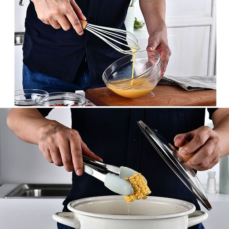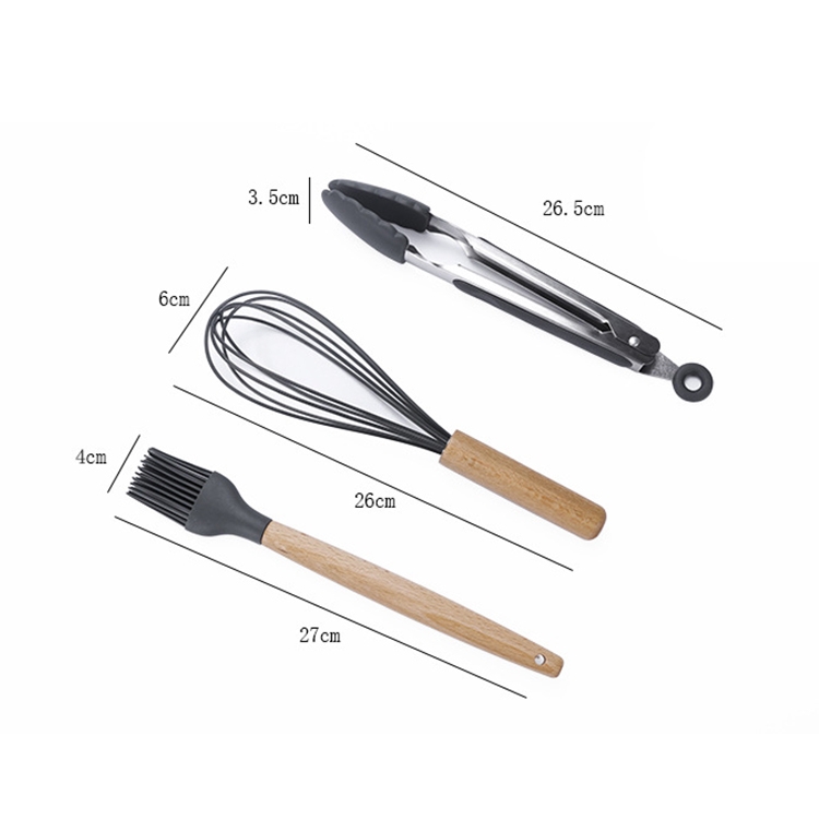 kn082 11 in 1 Wooden Handle Silicone Kitchen Tool Set with Storage Bucket