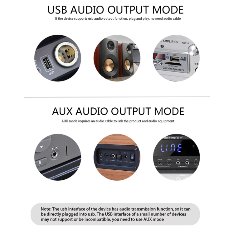 2. USB mode does not need to use 3.5mm audio cable, directly plug into the car USB port or speaker USB port, you can use it directly after pairing with the mobile phone Bluetooth