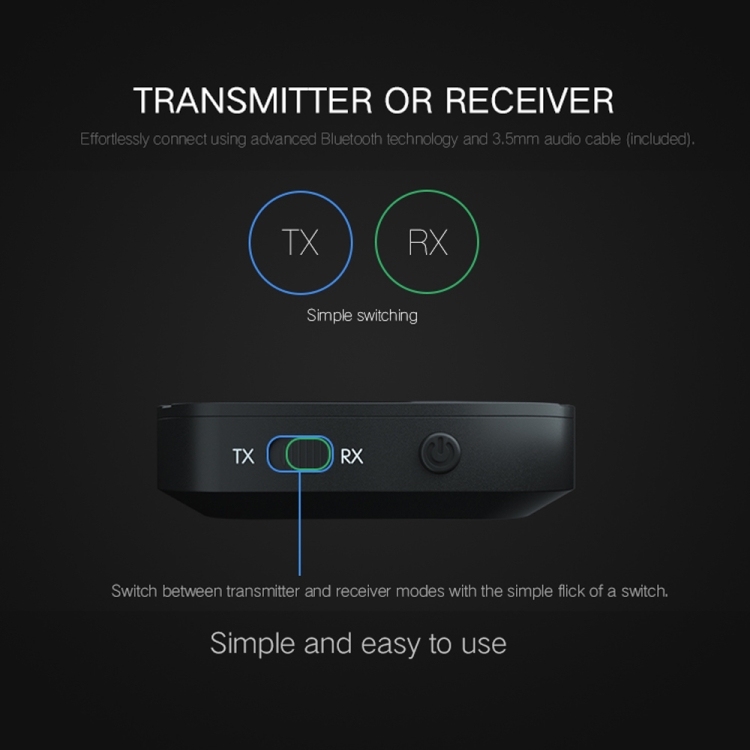4. Switch between transmitter and receiver modes with the simple flick of a switch. Effortlessly connect using advanced Bluetooth technology and 3.5mm audio cable (included).