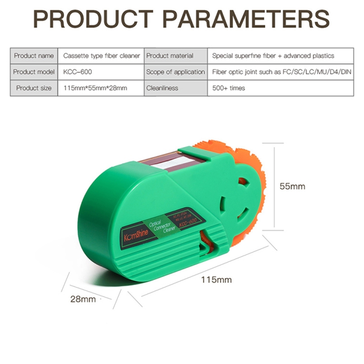 4. Suitable for cleaning the ferrule end face of optical fiber connectors such as FC/SC/LC/ST/MU/D4/DIN.