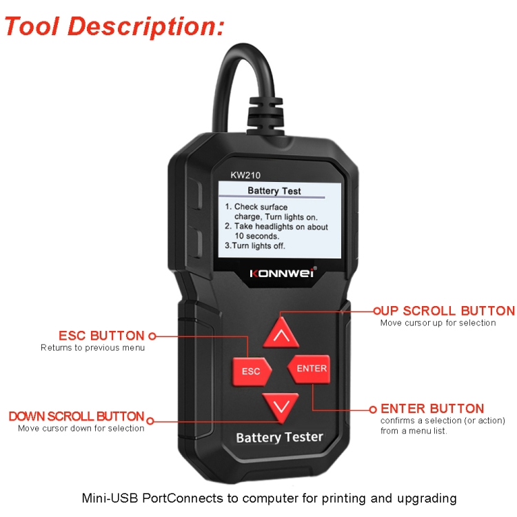 KONNWEI KW210 Car Battery Test Battery Capacity Resistance Battery Detector