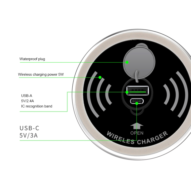 KP-ZMC Embedded Desktop Wireless Charger with PD+USB Interface Cable Length: 1.2m