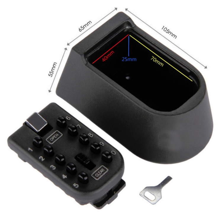 7. Dimensions: overall 105x65x55 mm, internal 40x70x25 mm