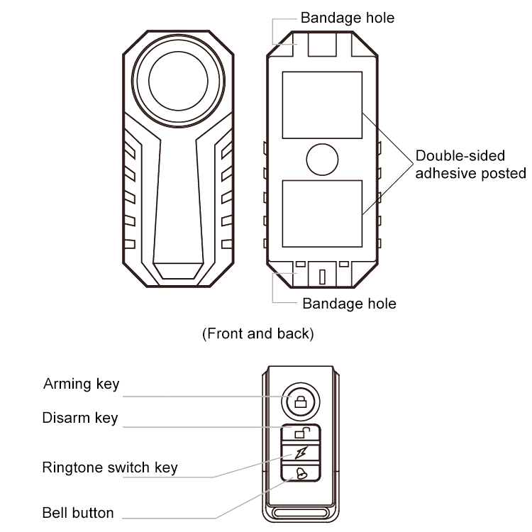 KS-SF22R IP55 Waterproof Wireless 113dB Vibration Burglar Sensor Alarm with Remote Control for Vehicle / Bicycle / Electric Bicycle