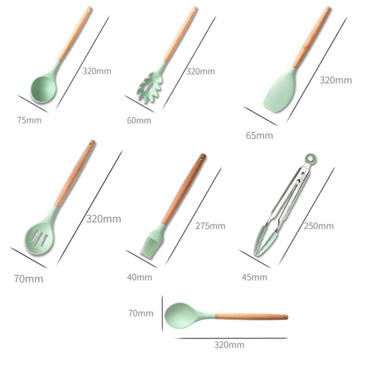KU349 13 In 1 Storage Barreled Wooden Handle Silicone Kitchenware Set Non-Stick Cooking Spoon Shovel Kitchen Rack