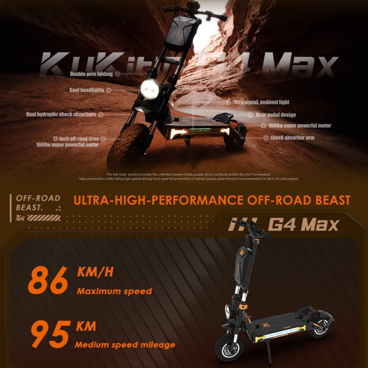 Kukirin G4 Max 12 inch Tires 3200W 60V 35.2AH Three-speed Folding Electric Offroad Scooter with LED Display