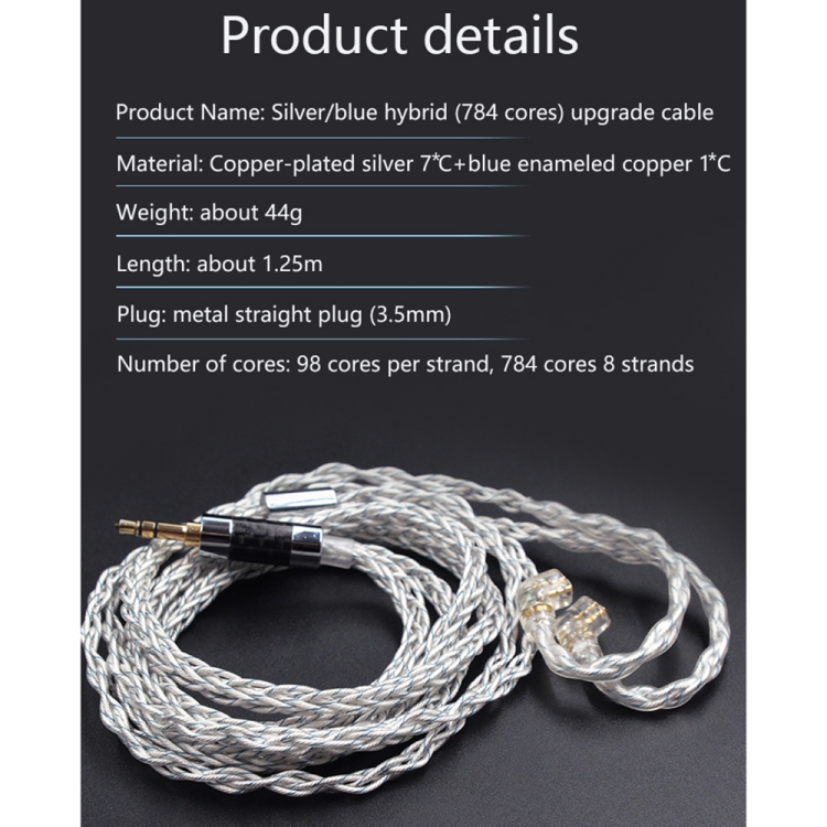KZ 3.5mm Plug 784-core Blue Silver Mixed Braided Silver-plated Earphone Upgrade Cable For KZ ZS10 Pro / DQ6 / ASX, Cable Length: 1.2m