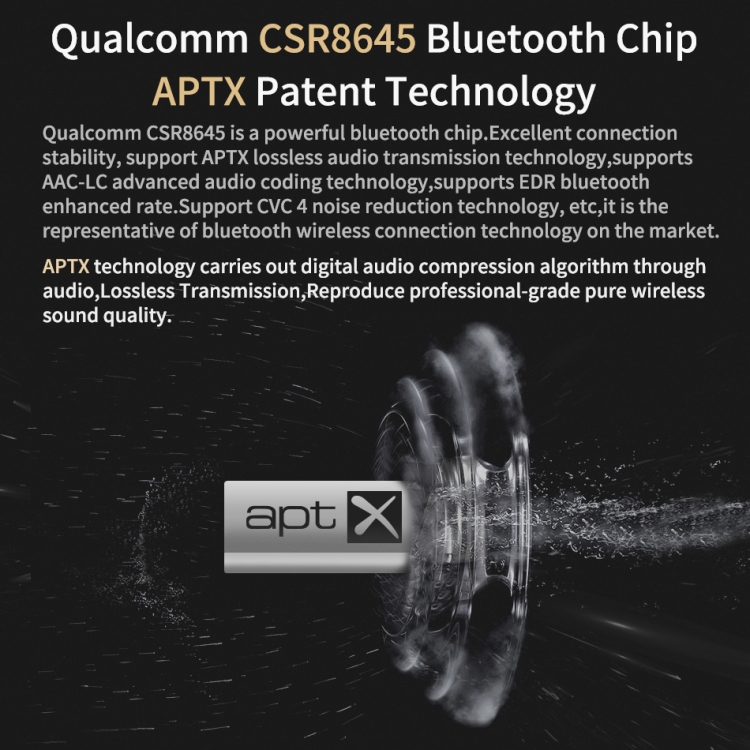 2. Qualcomm CSR8645 Bluetooth chip, with 3 seconds of fast connection, excellent reconnection speed and stronger signal anti-interference ability.