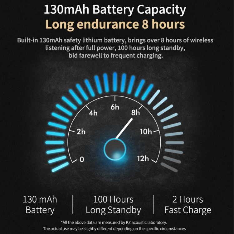 6. Built-in 130mAh safe lithium battery, after full charge brings more than 8 hours of wireless listening, 100 hours long standby, bid farewell to frequent charging.