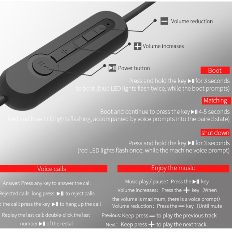 3. When the battery is low, the red LED flashes and is accompanied by a tone. the charger into the charging port, charging the red LED light is always on.