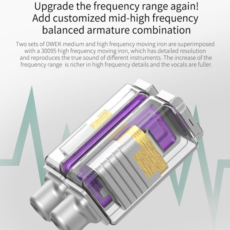 2. Two sets of DWEK medium and high frequency moving irons are combined with a 30095 high frequency moving iron, which has paper-blowing resolution and reproduces the real sounds of different instruments
