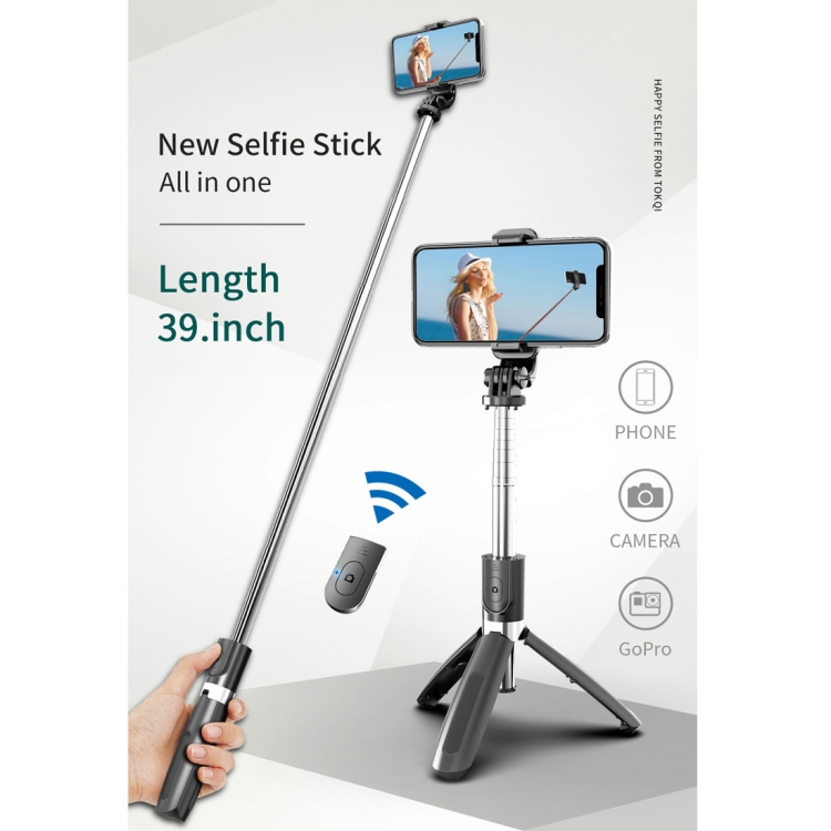 L02 100cm Multi-function Adjustable Bluetooth Self-timer Pole Tripod Selfie Stick