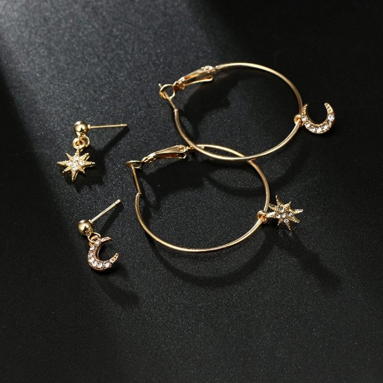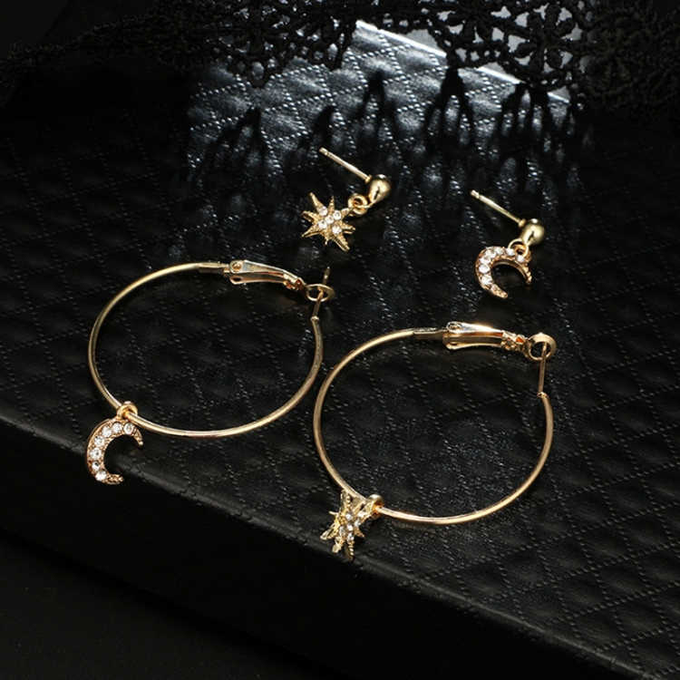 Ladies Crystal Earrings Stars The Moon Ear Ring Suit