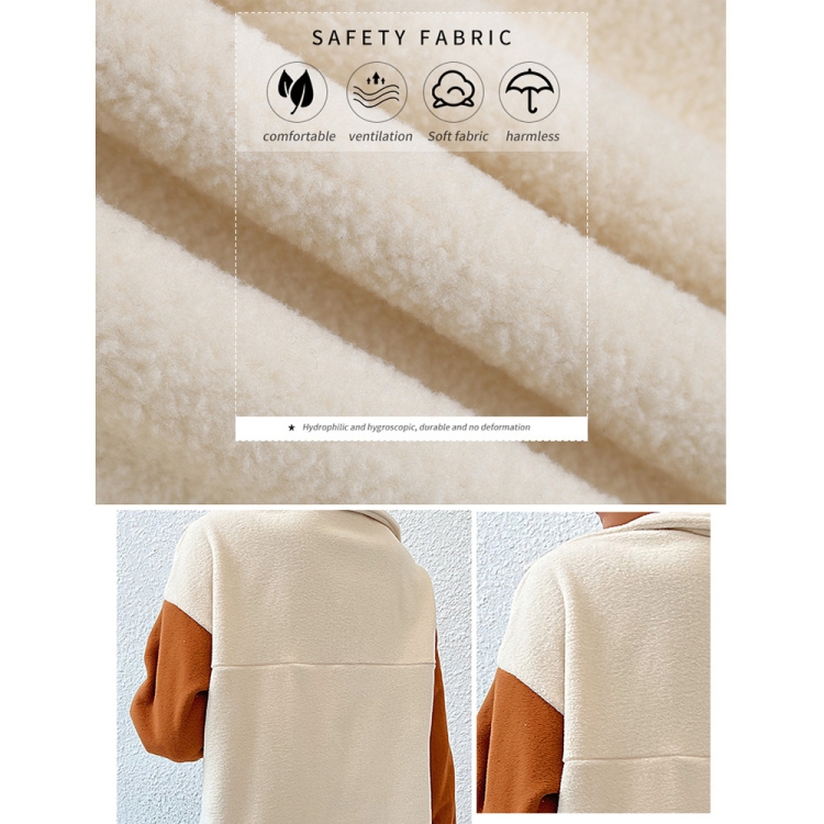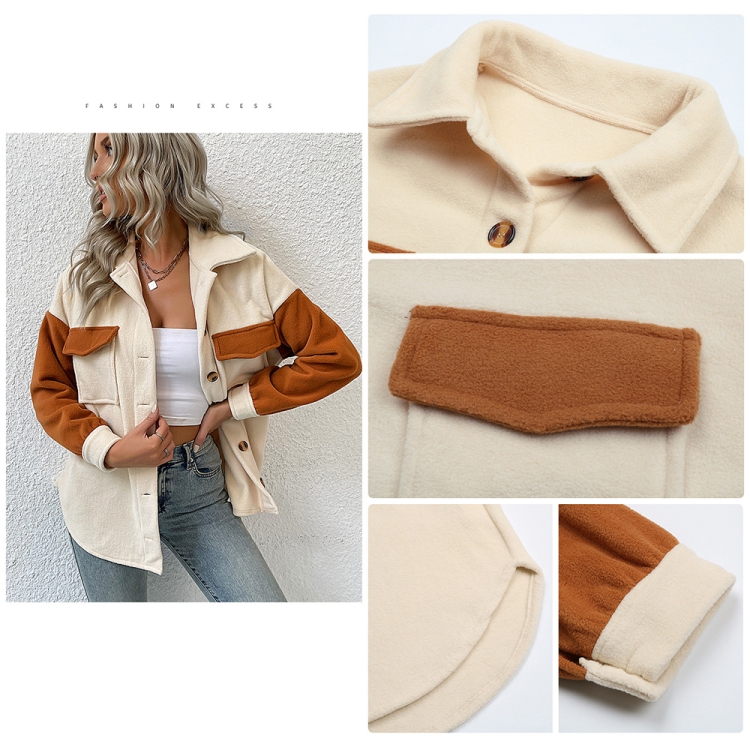 Ladies Lapel Colorblock Long Sleeve Pocket Fall Winter Fleece Jacket