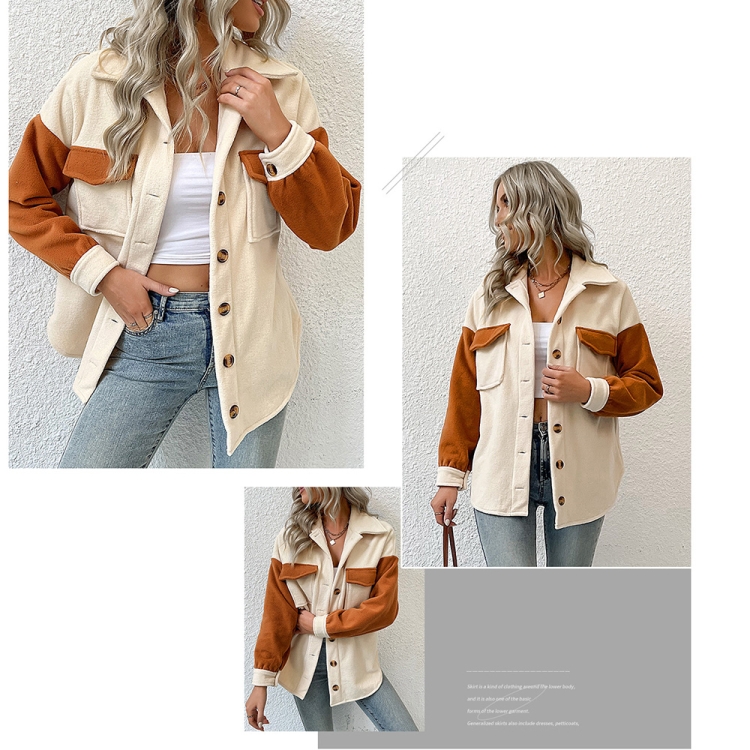 1. Feature: Long sleeve, button down, turndown collar, oversized shirts jacket with pockets.