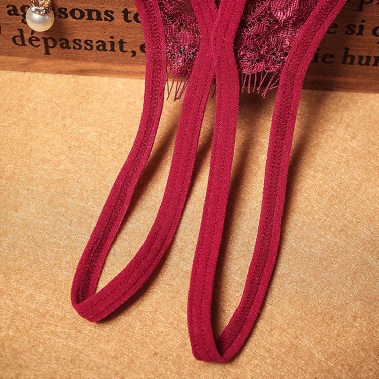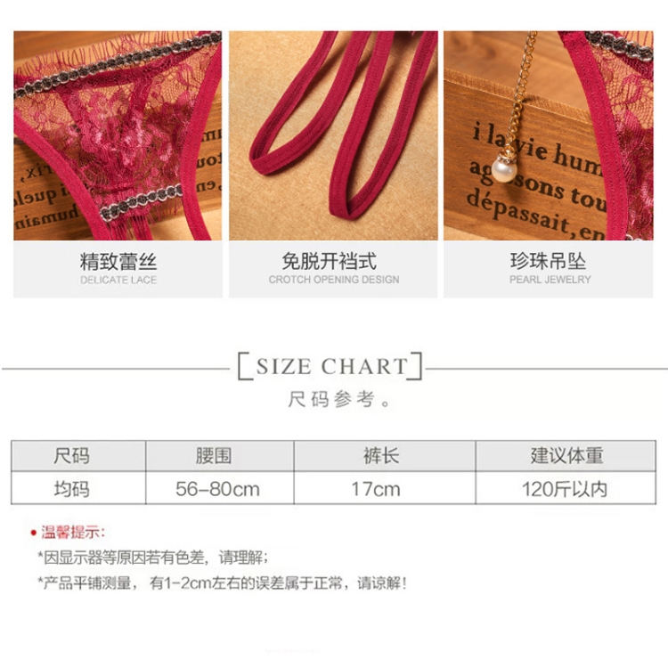 Ladies Low Waist Transparent Sexy Open Gear Pearl Pendant Erotic Thong Lace Panties
