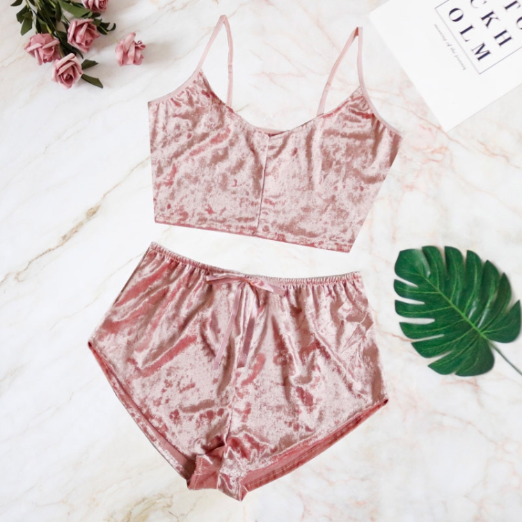 Ladies Sexy Velvet Crop Tops Pants Set Underwear Pajamas