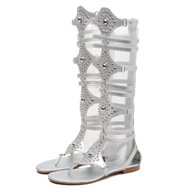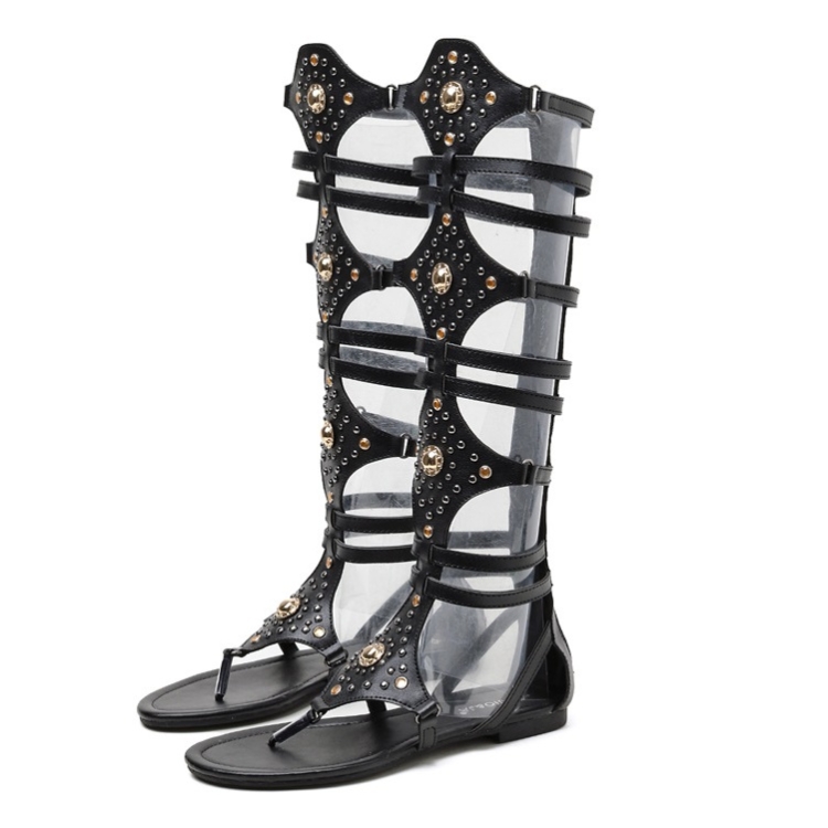 Ladies Summer High Tube Rivet Flip Flops Casual Roman Style Sandals