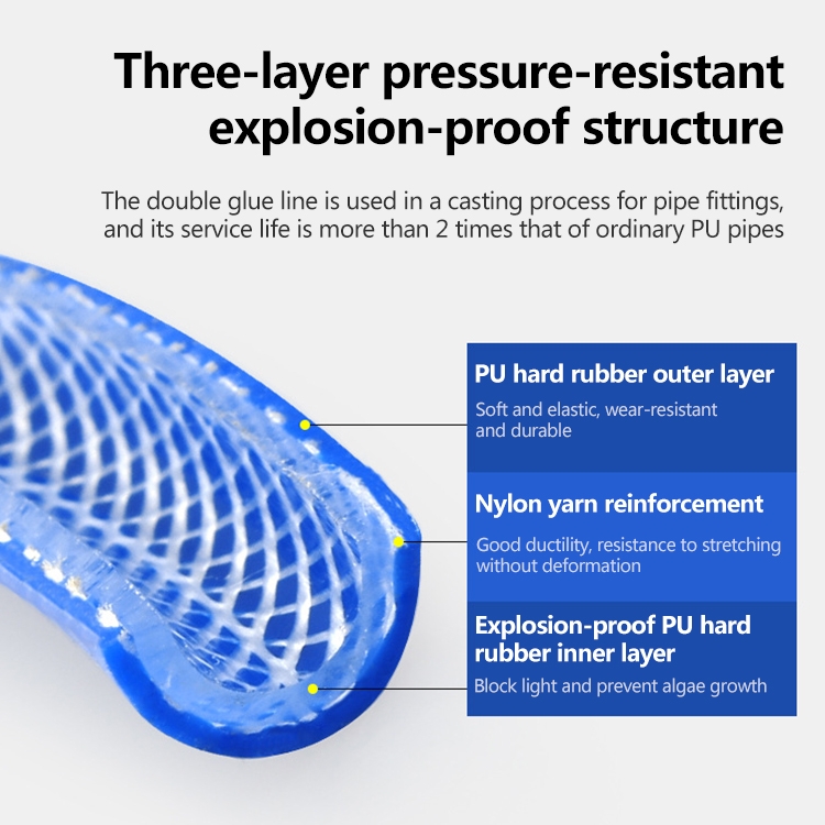4. The inner layer of explosion-proof PU hard rubber blocks light and prevents the growth of algae.