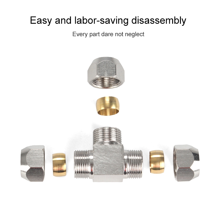 LAIZE Nickel Plated Copper T Type Tee Pneumatic Quick Fitting Copper Pipe Connector