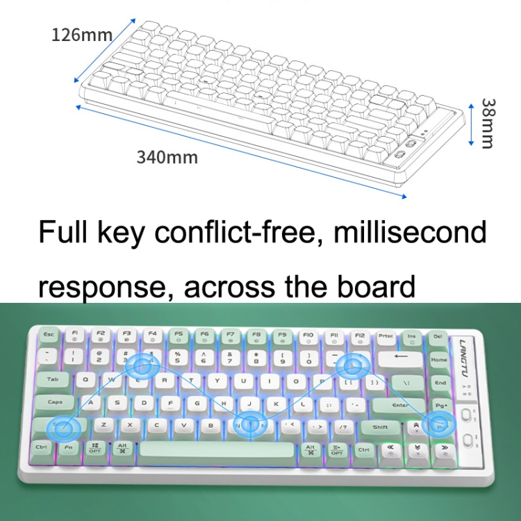 LANGTU GK85 85 Keys Gold Shaft Mechanical Wired Keyboard. Cable Length: 1.5m
