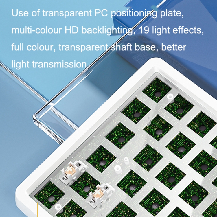3. Use of transparent PC positioning plate, fixed shaft body bit mechanical keyboard stress reverse side play a big role