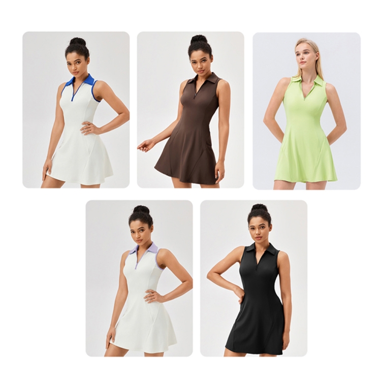 Lapel One-piece Tennis Skirt Quick-drying Breathable Waisted Sports Dress