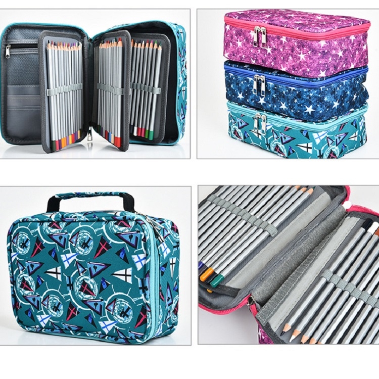 Large-Capacity Frosted Pencil Case Zipper Pencil Case, Blue Five-pointed Star, Red Five-pointed Star, Green Geometry