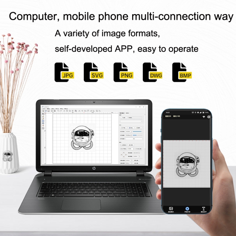 7. A variety of image formats (JPE/SVG/PNG/DWG/BMP) , self-developed APP, easy to operate