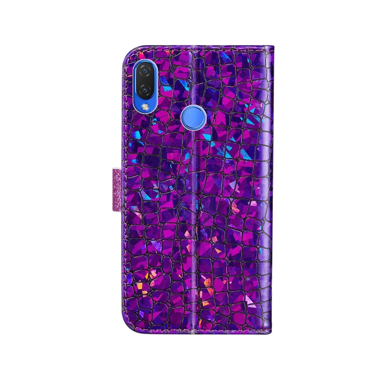 Laser Glitter Powder Matching Crocodile Texture Horizontal Flip Leather Case for Huawei Nova 3i, with Card Slots & Holder