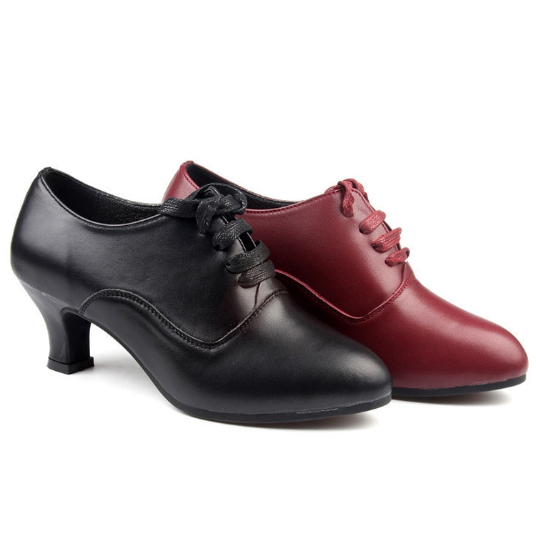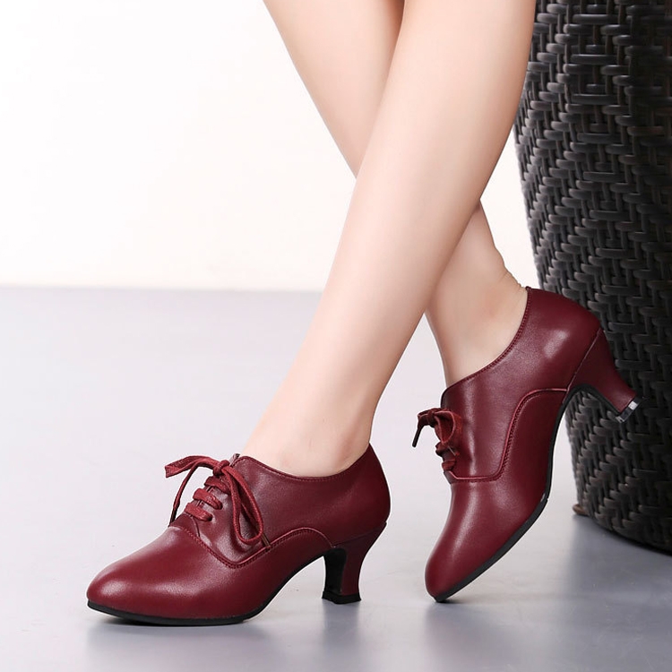 Latin Dance Shoes Women Leather Square Dance Soft Soled Medium Heels Shoes