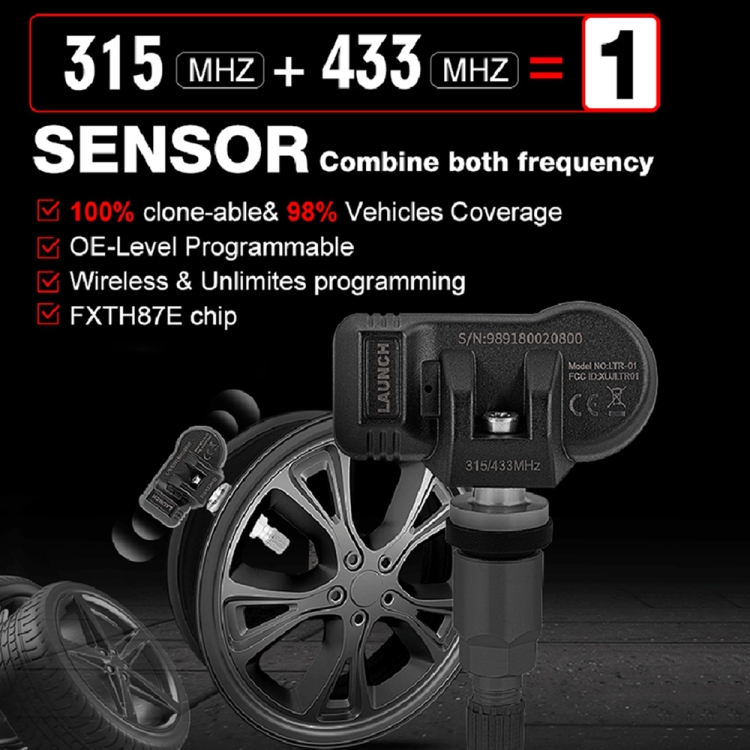 LAUNCH LTR-01 315MHz / 433MHz 2 in 1 Universal Programmable TPMS Tire Pressure Monitor Sensor