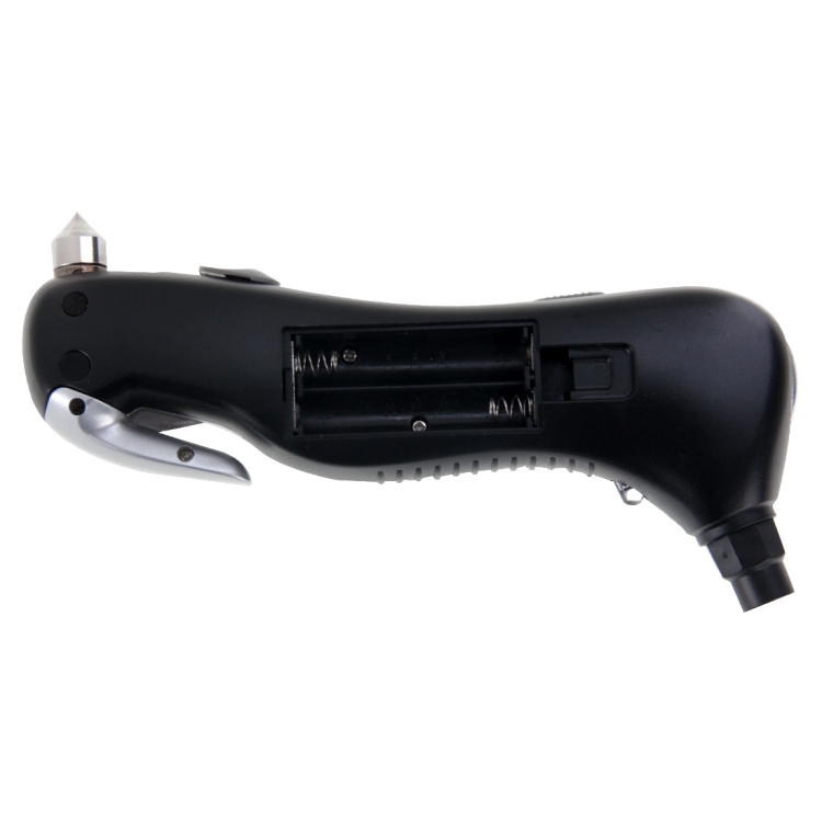 3. Its intended uses are:a digital tire gauge,a bright flashlight,an emergency hammer