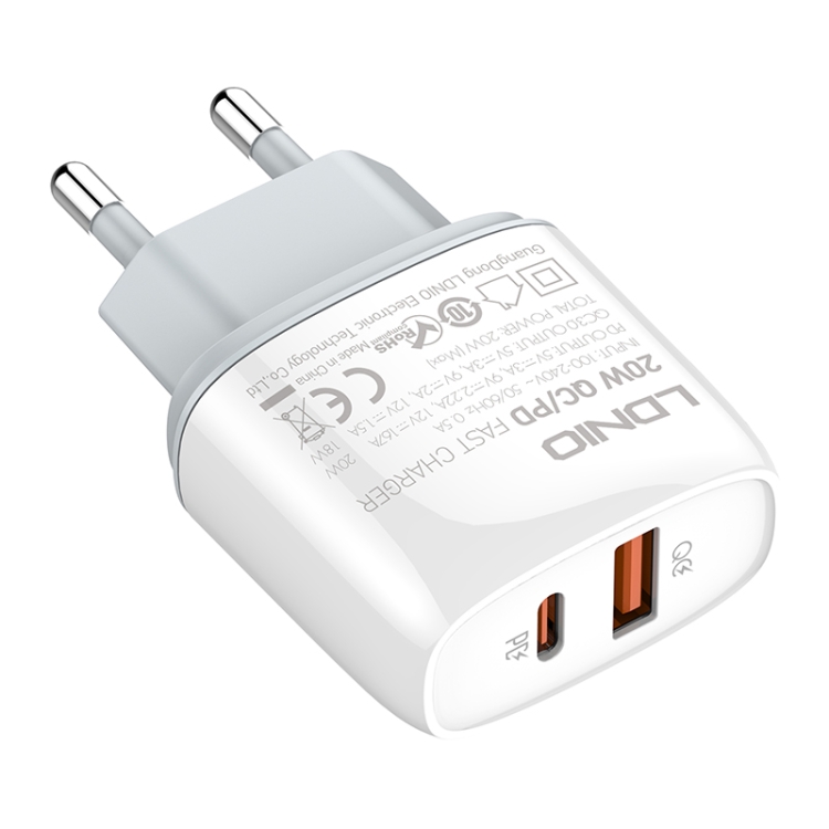LDNIO Q229 QC3.0 / PD20W USB + Type-C Fast Charger with 1m USB to Type-C Cable