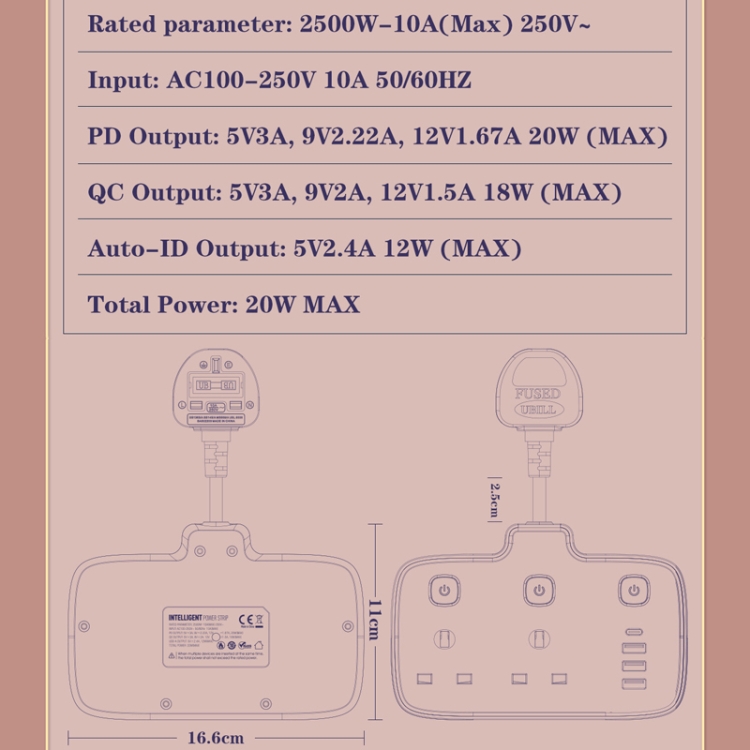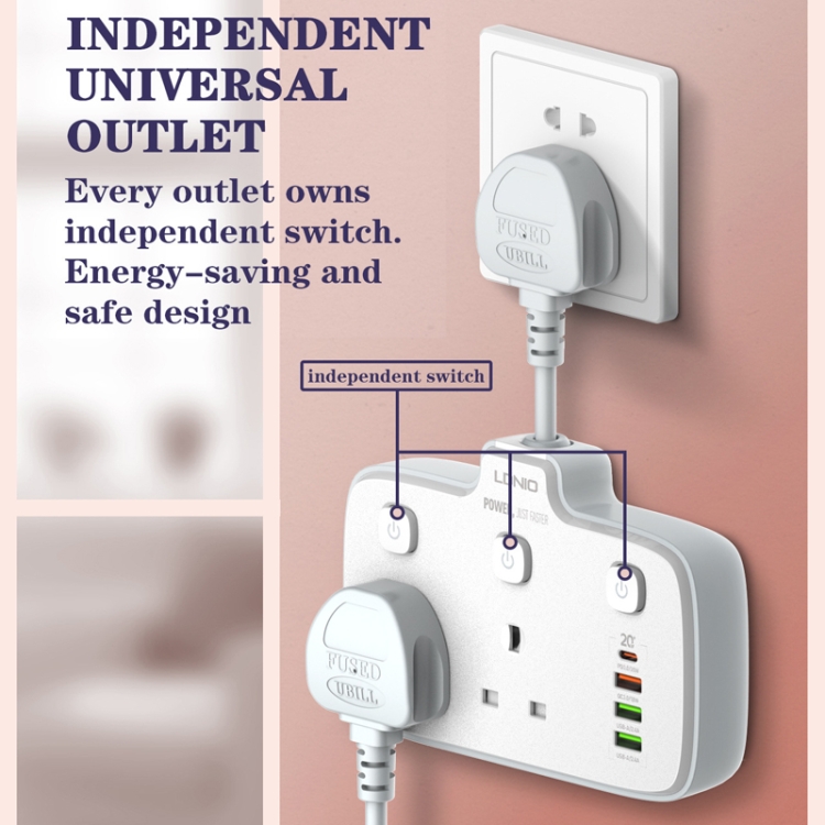4. Independent universal outlet, each outlet has an independent switch, energy-saving and safe design