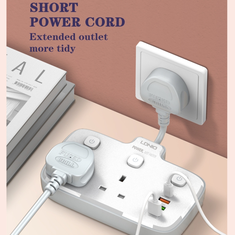 2. Short power cord, longer outlet, more tidy
