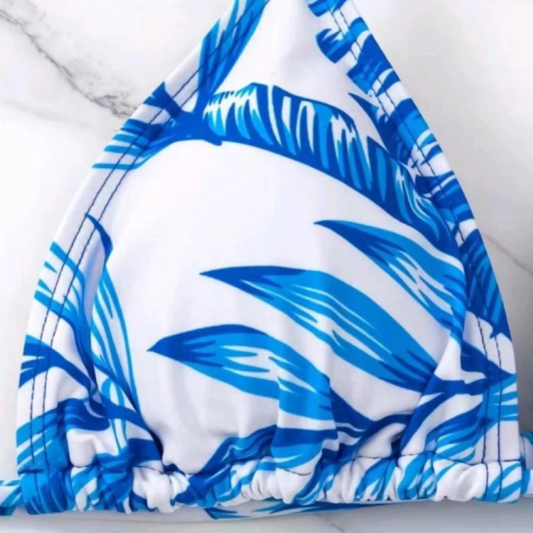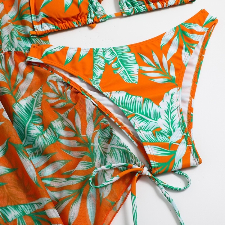 Leaf-print Waist Lace-up Three-Piece Bikini Set Long-sleeved Beach Sun Protection Swimsuit