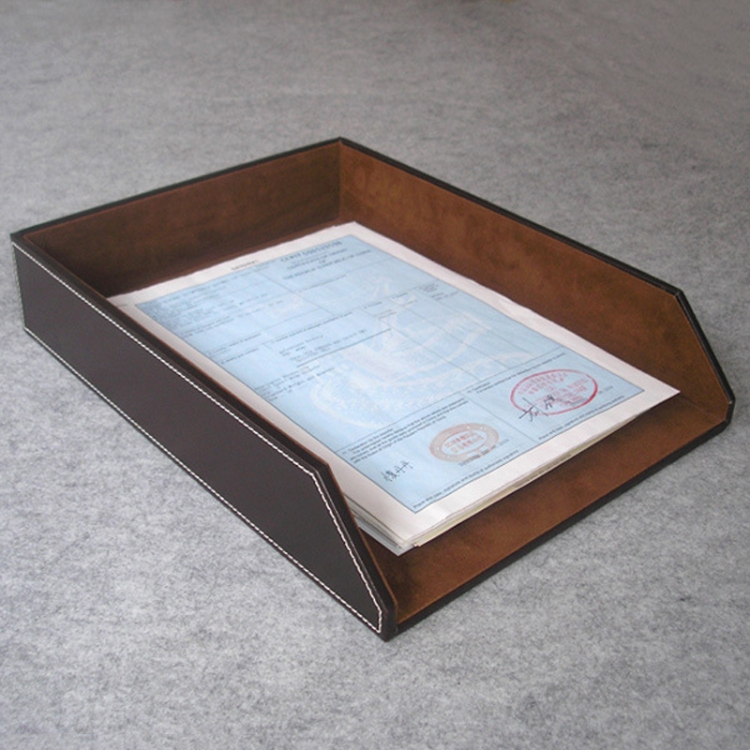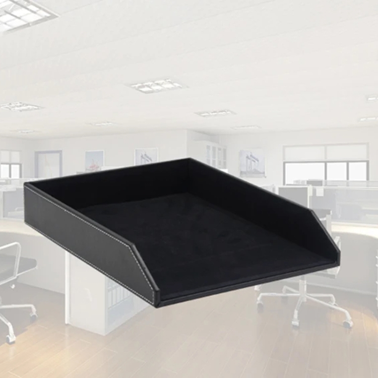 Leather A4 Paper Tray Business Office Stackable Single Layer Data File Tray Note Storage Organizer