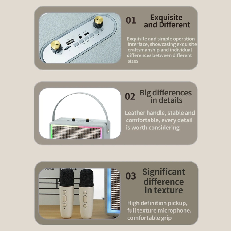 Leather Colorful Light Effect Karaoke Audio Retro Outdoor Bluetooth Speaker