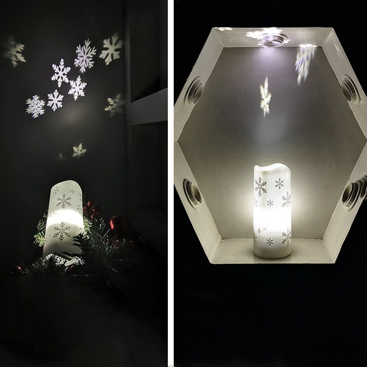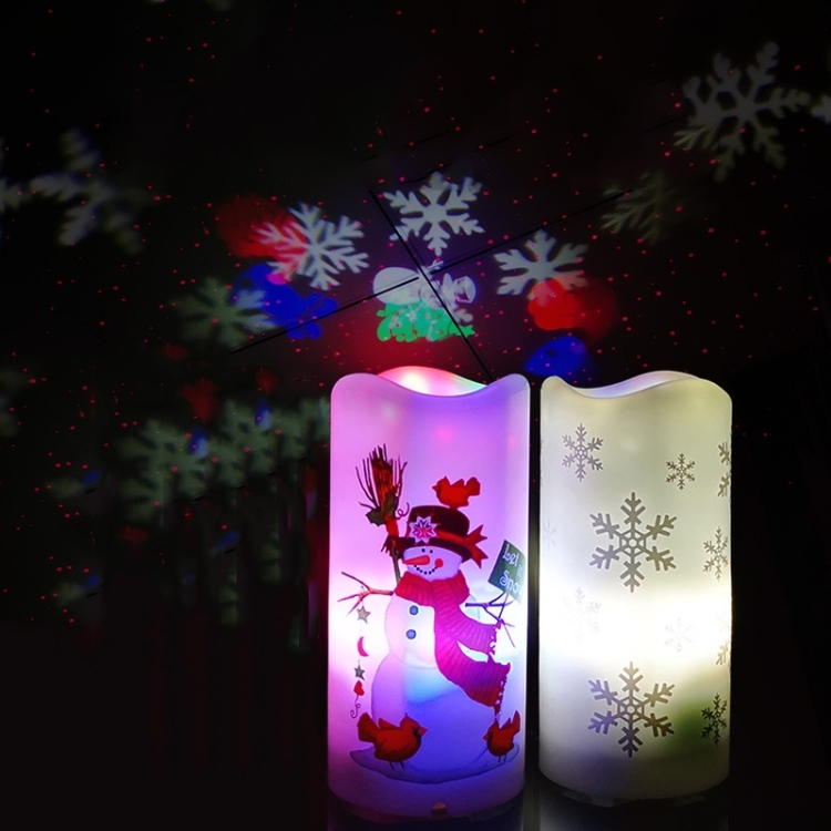 LED Candle Projection Lamp Christmas LED Decoration Night Light, Snowflake, Snowman