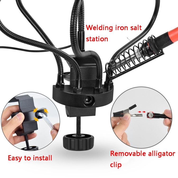 1. Aluminum alloy base, with black soft rubber pad, tightly clamp the table to prevent slipping.
