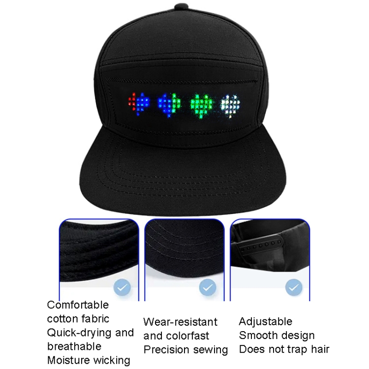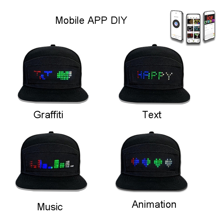 LED Luminous Advertising Hat DIY Words Pixel Lighting Rechargeable Bluetooth APP Control Scrolling Message Flexible Cap