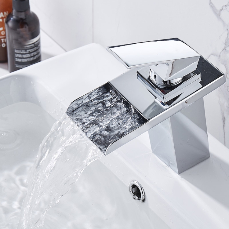 LED Three Lights Hot Cold Water Faucet Bathroom Waterfall Faucet CN Plug