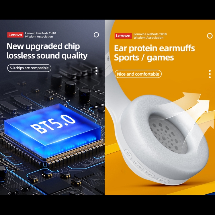 Lenovo TH10 Wireless Bluetooth Gaming Bass Music Sports Noise-cancelling Headphone