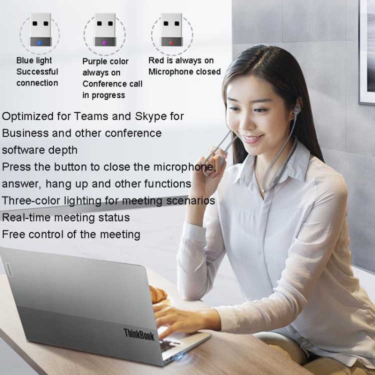 3. Optimized for Teams and Skype for Business and other conferencing software, you can press the button to close the microphone, answer, hang up and other functions, three-color lighting for the conference scenario, real-time understanding of the conference status (blue is always on: successful connection; purple is always on: the conference call is in progress; red is always on: the microphone is closed in the middle of the microphone)