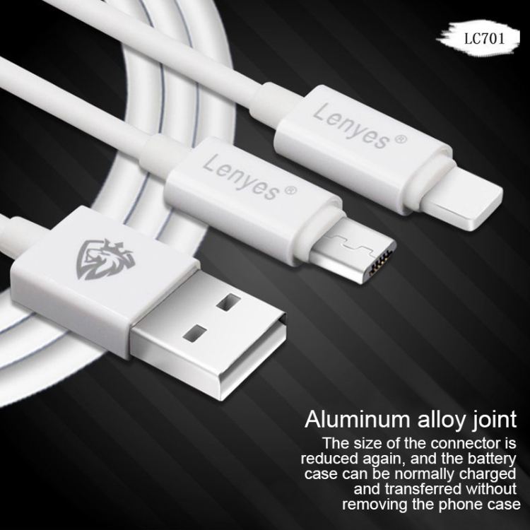 Lenyes LC701 1m 2.4A Output USB to 8 Pin PVC Data Sync Fast Charging Cable