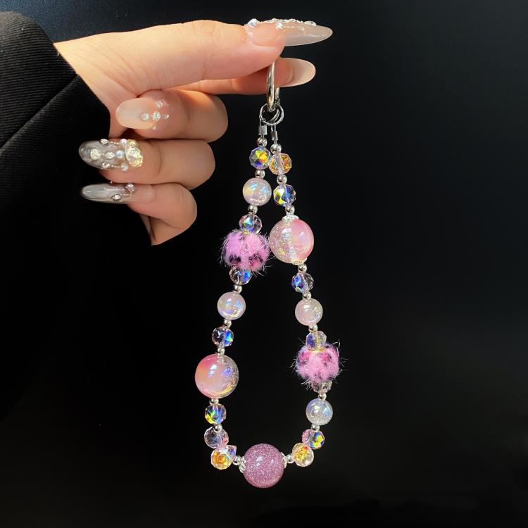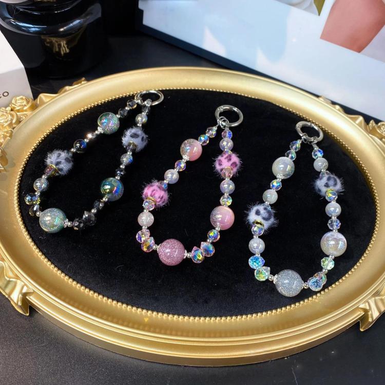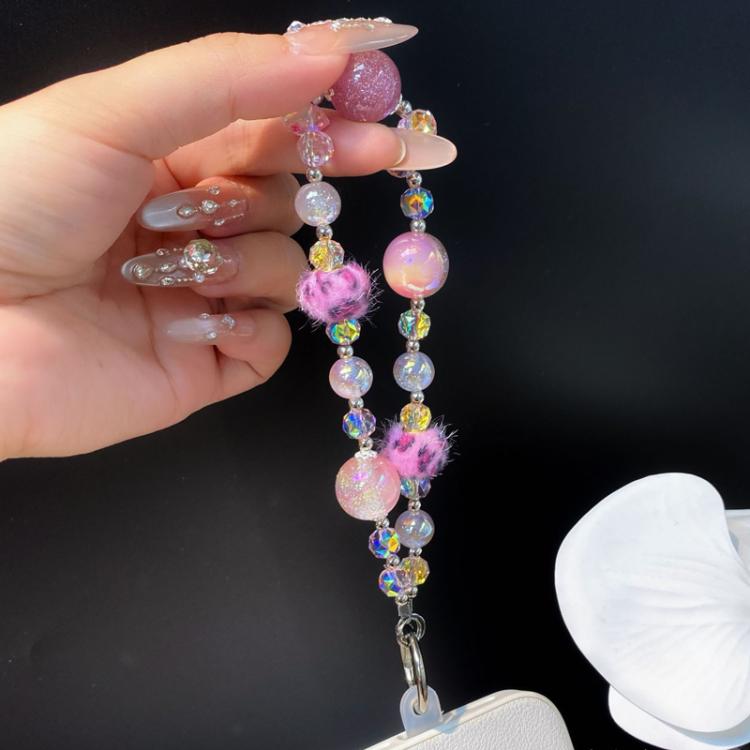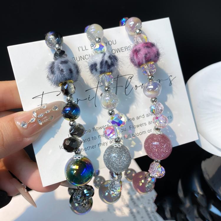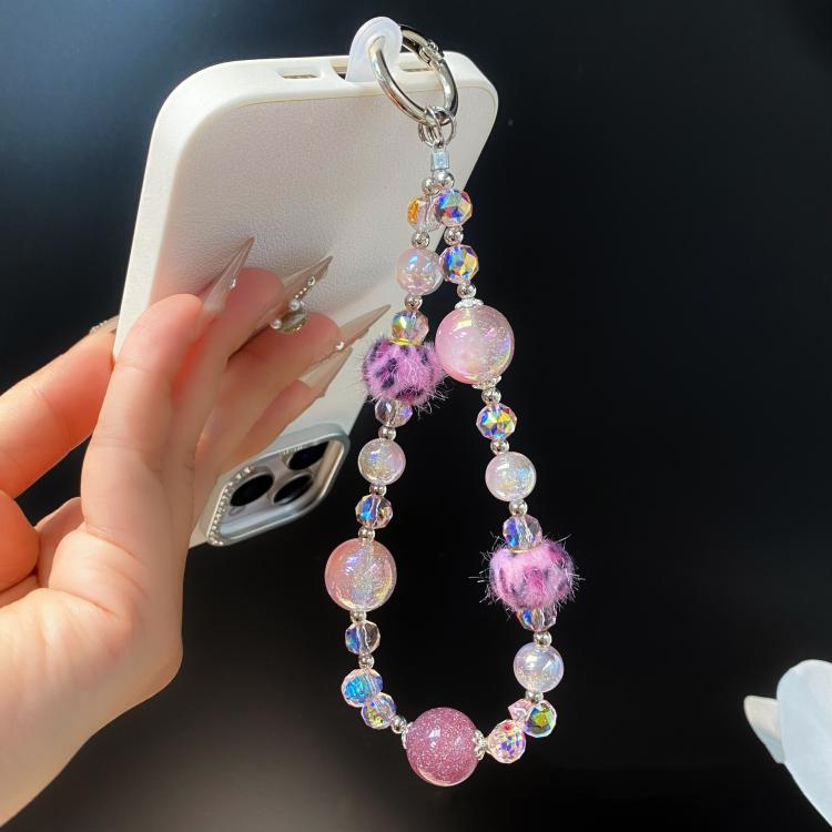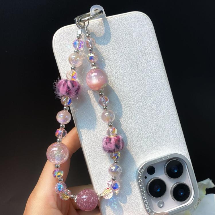 Leopard Print Fur Ball Cell Phone Chain Crystal Handmade Beaded Chain