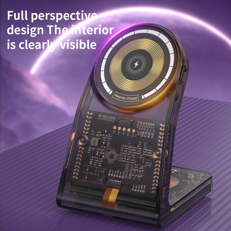 LFX-198 15W Transparent MagSafe Wireless Charging Stand with Removable Watch Charger