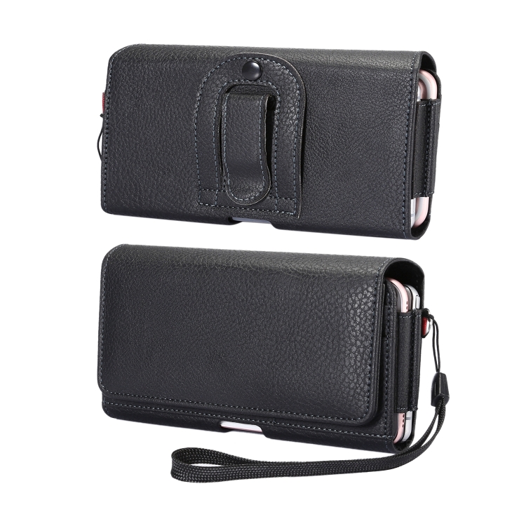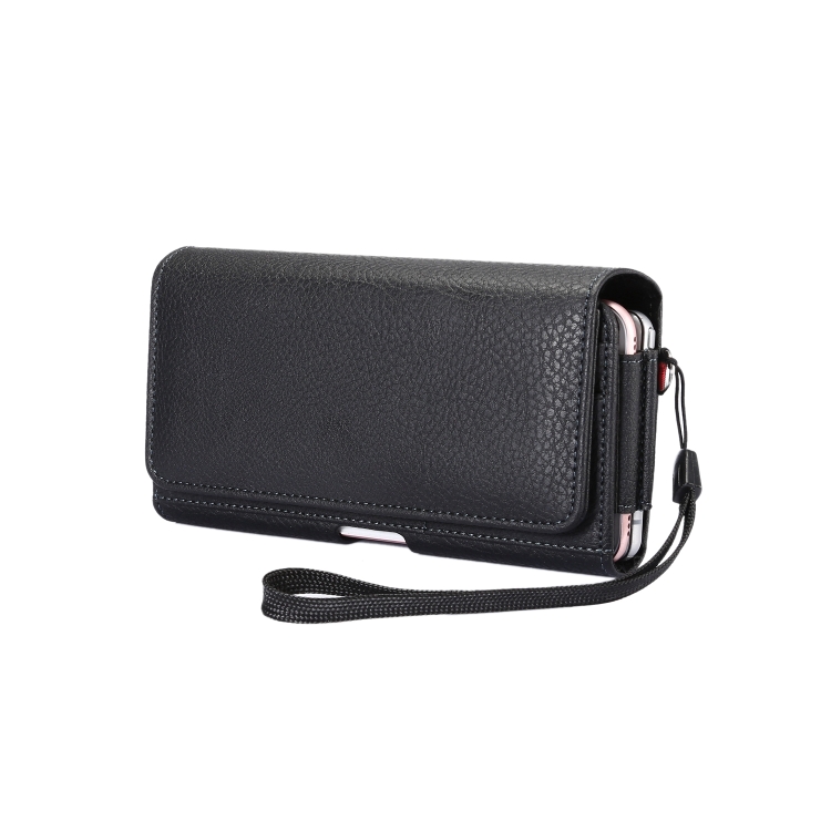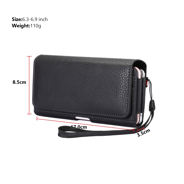 Litchi Texture Vertical Flip Thwartwise PU Leather Case / Waist Bag with Back Splint & Card Slots & 15cm Lanyard for 6.7 inch Phone Universal