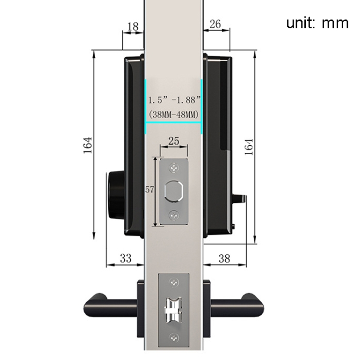 – Door thickness: 38-48mm, need to add 2 holes